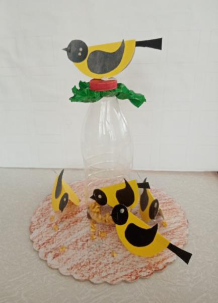 Позднее дошкольников в рамках занятия кружка "Малышок" в игровой форме познакомили с интересными фактами о жизни синичек. Вместе ребята изобразили хохлатую синицу и пухляка, буроголовую гаичку, произнесли звуки, которые издаёт птичка. Вспомнили, какими продуктами можно подкармливать пташек и выполнили коллективную работу «Синичкина столовая».