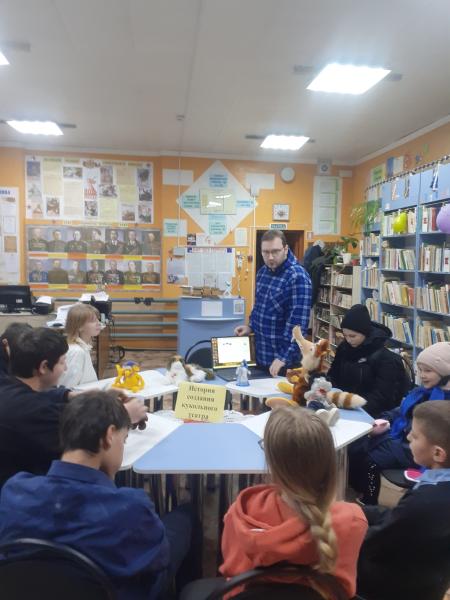 В  библиотеке в рамках Всероссийской недели «Театр и дети» прошел час познания "История создания кукольного театра". Ребята познакомились с кукольным театром, узнали о первых театрах кукол, о том как создаются куклы для спектаклей. Юным читателям продемонстрировали видео-отрывки сказочных представлений.