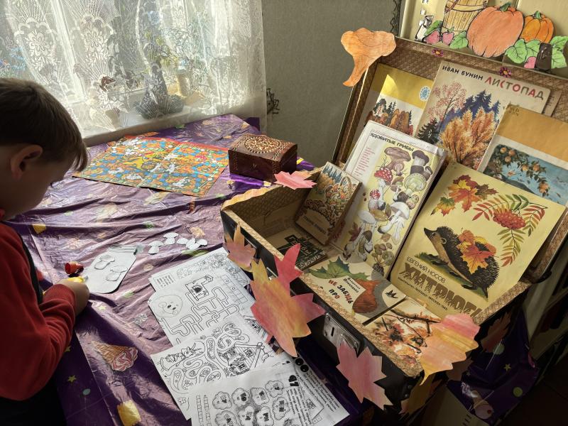Большим спросом у детей пользовались выставки "Новинки литературы" и "Осенний чемоданчик. Октябрь". Дети с большим интересом рассматривали новые книги и играли в игры из чемоданчика, изучали осенние дары - съедобные грибы и ягоды, пословицы и поговорки об октябре.