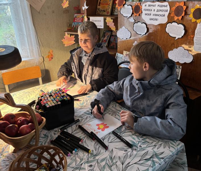 1 октября в Улинской библиотеке стартовала акция «Праздник мудрости». Дети совместно с библиотекарем изготовили открытки, чтобы поздравить односельчан возраста мудрости с Днём пожилого человека.