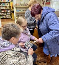 Библиотекарь вместе с активом юных читателей вручали открытки и поздравляли бабушек и дедушек на дому и улицах деревни. В ответ те дарили библиотечному десанту свои добрые улыбки и слова благодарности.