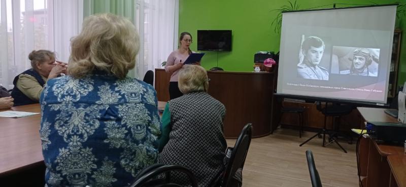 На встрече библиотекарь рассказала о советском чёрно-белом художественном фильме режиссёра Леонида Фёдоровича Быкова «В бой идут одни старики», давно ставшего классикой советского кинематографа.